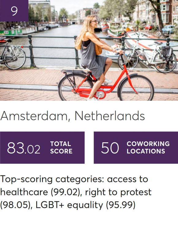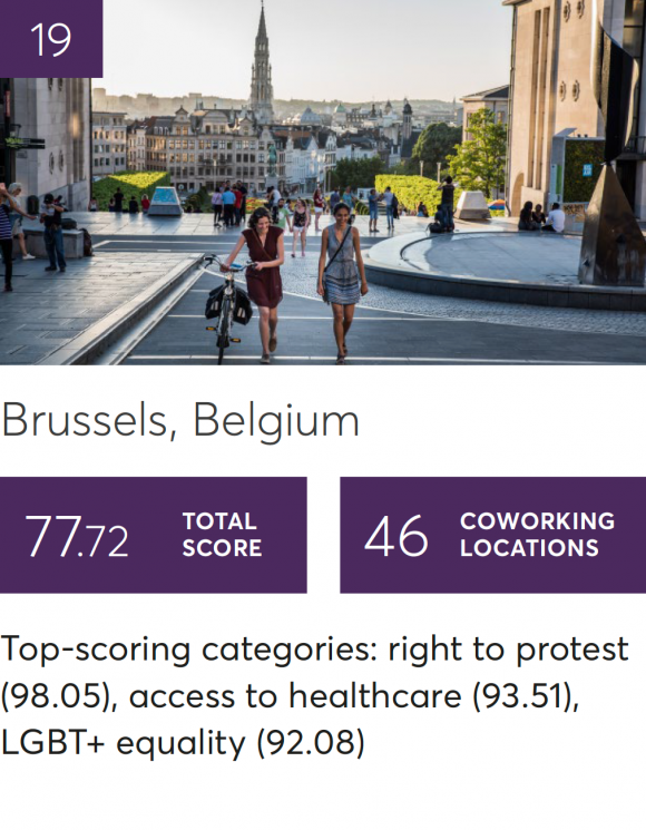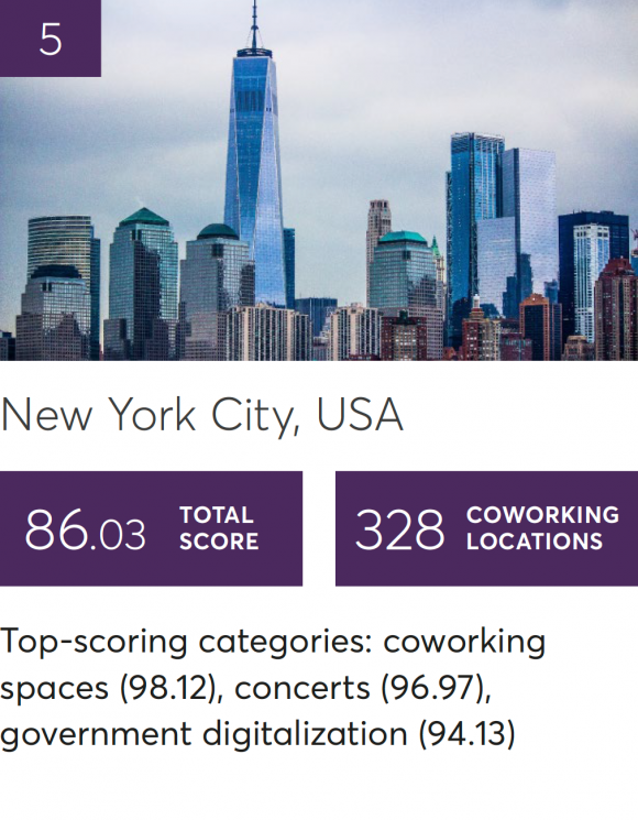 The following pages show the top 20 cities with most appeal for Generation Zers, their top scoring categories and the number of coworking locations in the city.