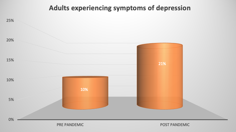 It’s not yet known how COVID-19 will impact mental health in the longer term but according to the Office for National Statistics around 1 in 5 adults (21%) experienced some sort of depression in early 2021. More than double that observed before the pandemic (10%).