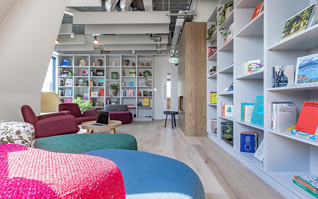 The layout of the office space remained undivided, but management were no longer hidden away in their private suites. The office layout was augmented by plants and temporary screens to suit the communication needs of the teams.