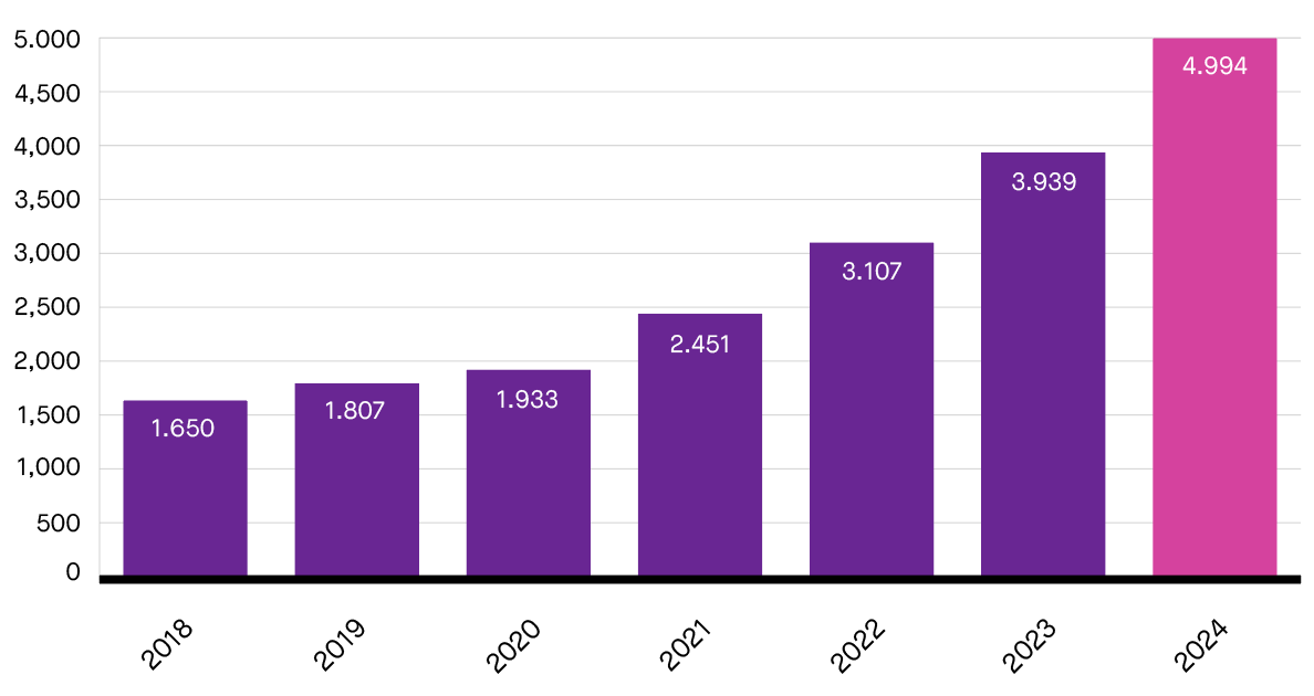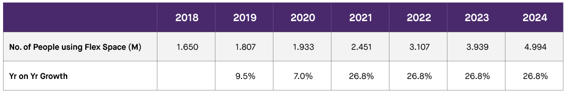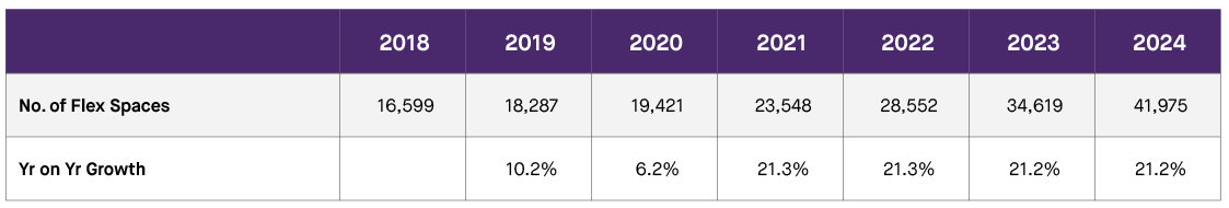 Between 2020 and 2024 the number of flexible workspaces worldwide is expected to double. The impact of COVID-19 in 2020 slowed the rate of growth to 6.2% but the market is expected to bounce back this year to record 21.3% year on year growth.