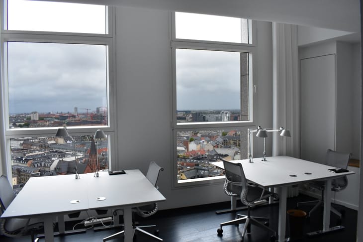 The serviced office at Gammel Kongevej 60 is one of ordnung’s smaller locations and thus has a more intimate atmosphere. At this workspace, we offer both private office suites as well as coworking plans. The office spaces are spread across the 17th and 18th floors of the building, and are all bright, welcoming, and furnished with high quality inventory.