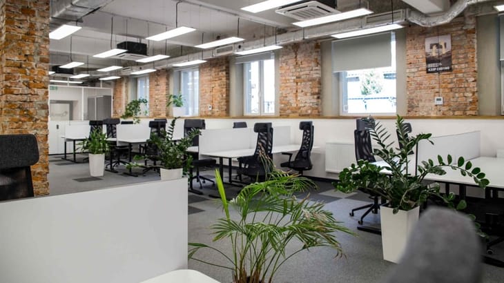 The property offers flexible workspace solutions including traditional office floors with nearly 8 000 m² of space and serviced office and coworking options with dedicated desks, private offices, meeting rooms, and shared facilities. Its industrial design combined with contemporary amenities such as high‑speed internet, reception services, and spaces for cyclists makes it suitable for a diverse mix of professionals and teams.