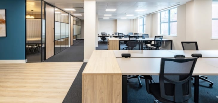 The building provides approximately 14,000+ sq ft of office space with flexible layouts suitable for different company sizes. Workspaces range from small offices to larger managed suites and can accommodate various desk configurations. Key features include 24/7 access, a manned reception, lifts, bike storage, showers, meeting rooms, and kitchen facilities, creating a convenient and comfortable workspace for tenants.