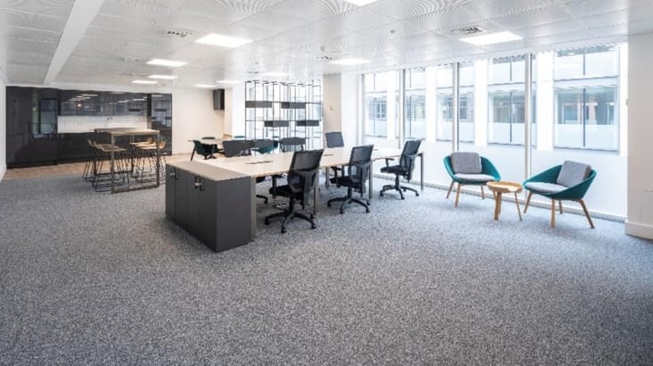 The property comprises flexible office floors with open-plan layouts, recently refurbished interiors, meeting rooms, boardroom, kitchen facilities, concierge reception, bike storage, showers and 24-hour access – ideal for professional and creative businesses.