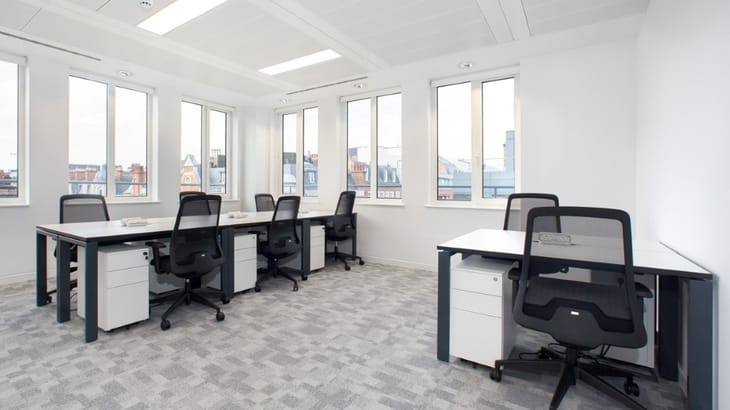 The property comprises several floors with offices featuring open-plan layouts, meeting areas, skylights, and roof terrace potential. It’s a historic six-storey building combining character with modern commercial fit-outs ideal for office use or creative businesses.
