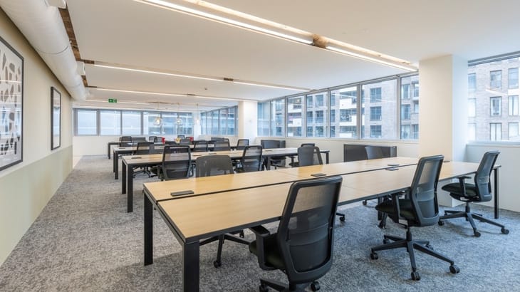 The building provides fully furnished and ready-to-move-in offices with layouts including desks, meeting rooms, phone booths, breakout areas, and kitchens. Spaces range in size and can support teams with inclusive facilities and tech infrastructure to support daily business operations.