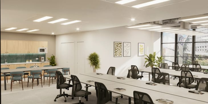 The Ark provides high-quality, fully refurbished office accommodation across multiple floors, with flexible layouts suitable for small to large occupiers. The interiors include open-plan workspaces, meeting rooms, breakout areas, and a large atrium with café and communal facilities. Amenities such as a gym, terraces, shower facilities, and a panoramic “crow’s nest” meeting room enhance the workspace experience, along with strong natural light and modern infrastructure.
