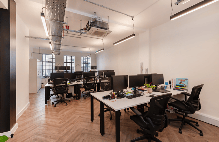 Offices here are accessible 24 hours a day and enjoy round the clock security, as well as air conditioning and lots of natural light throughout. Meeting spaces can be leased by the hour as required and the design of the building has a modern, industrial look that makes for a really quirky working environment.
