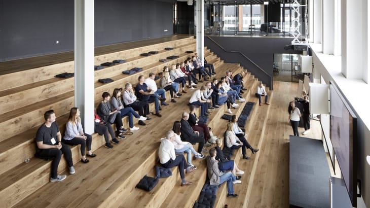 The building provides fully fitted, flexible office space ranging from around 5,167 – 6,997 sq ft, suitable for roughly 48–100 desks, with a shared entrance on Pancras Square, great natural light and views over the nearby canal area. Interiors include modern features such as air conditioning, breakout areas, showers and auditorium access for larger team events.