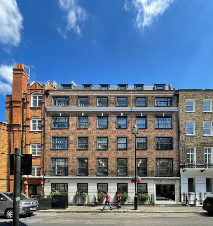 Positioned in the heart of Marylebone Village, this stunning penthouse office suite at Welbeck Works offers an exceptional working environment. Located on the top floor, the 737 sq ft fully fitted and furnished space benefits from outstanding natural light, far-reaching views and a private balcony. The building features a stylish concierge reception with barista coffee service, creating a welcoming arrival experience for staff and visitors alike. Available on a new, all-inclusive managed lease, this is a rare opportunity to secure a premium, turnkey office in one of London’s most desirable business locations.