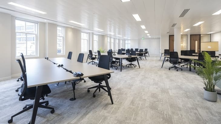 The building provides flexible office floors, with typical available spaces ranging from around 4,440 sq ft to 8,905 sq ft that can be taken as fully fitted CAT A+ or bespoke CAT A layouts. Interiors offer open-plan layouts, quality finishes, and essential amenities like air conditioning, contemporary lighting, and options for bespoke tenant fit-outs, making it suitable for a range of business sizes.