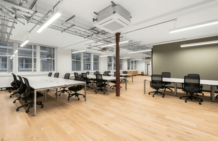 A warehouse office suite (3rd Floor) on Heddon Street benefiting from an abundance of natural light and original warehouse features.