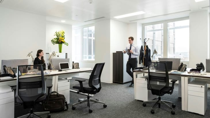 The building provides flexible workspace options across multiple floors, accommodating a wide range of office sizes from smaller private suites to large open-plan floors. Offices are typically fully furnished or can be adapted to tenant requirements, with facilities such as meeting rooms, breakout areas, high-speed broadband, showers, bike storage and option for car parking, making it suitable for both growing companies and established firms.