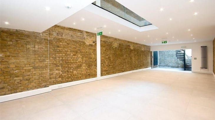 The building offers approximately 3,146 sq ft of office space available as large open-plan areas on the ground and lower ground floors with partial fit-out, while upper floors have been remodelled as high-end live/work accommodation including bedrooms and a roof terrace. Its flexible layout and industrial character make it ideal for a variety of uses.