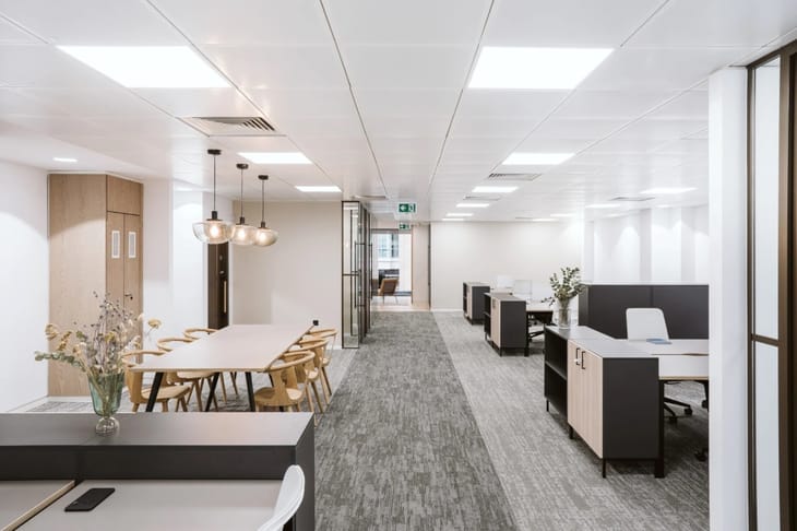 The property provides a self-contained, fully fitted office floor of approximately 2,600 sq ft, designed to accommodate up to around 30 desks. The layout includes meeting rooms, focus rooms, breakout areas, and a dedicated kitchen, supported by modern amenities such as air conditioning, high-speed internet, showers, and bike storage. The interiors combine contemporary finishes with creative design elements, delivering a flexible and productive work environment.