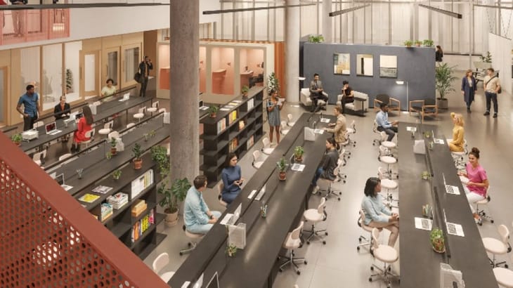 The workspace includes a mix of private fully serviced offices, coworking areas, dedicated and hot desks, meeting rooms, phone booths and a large event space. Members benefit from features like complimentary on-site barista coffee, stocked kitchens, generous breakout zones and a dedicated community team, all with flexible membership options.