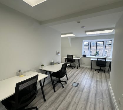 The property features a range of beautifully designed offices, all with air conditioning, accommodating teams of 2 to 6 people. Each office can come thoughtfully furnished, combining contemporary aesthetics with functionality to create a comfortable and inspiring workspace. Natural light floods the rooms through large windows, enhancing productivity and well-being.