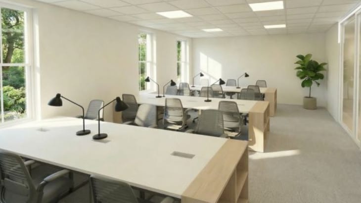 The building offers multiple floors of office accommodation arranged in open-plan and partially fitted layouts. Workspaces typically include meeting rooms, breakout areas, kitchen facilities, and private offices. Amenities include air conditioning, lifts, shower facilities, bicycle storage, raised floors, and strong natural daylight, creating a comfortable and functional working environment for professional teams.