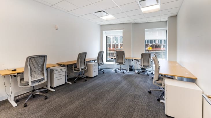 The building provides contemporary office and coworking spaces designed for creative and corporate tenants. Interiors feature open-plan layouts, high ceilings, natural light, meeting rooms, and modern HVAC systems. Additional amenities include bike storage, secure access, shared work areas, and a rooftop terrace with views across Downtown Brooklyn.
